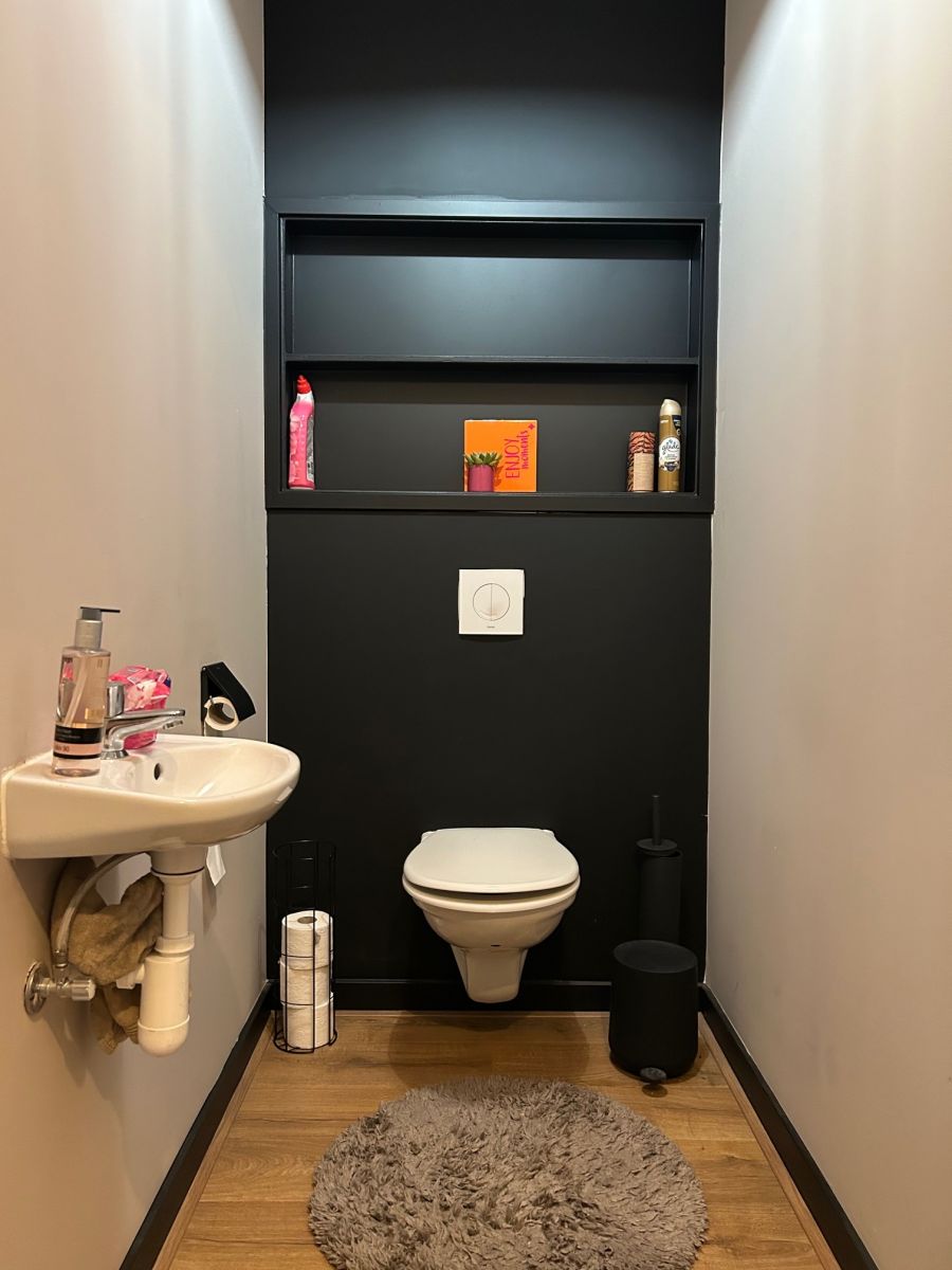 De keuken in de woning is gewrapped door de huidige bewoners. Dit kan worden overgenomen. De originele keuken heeft witte kasten.