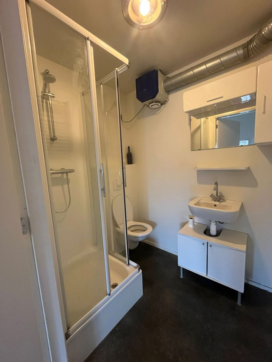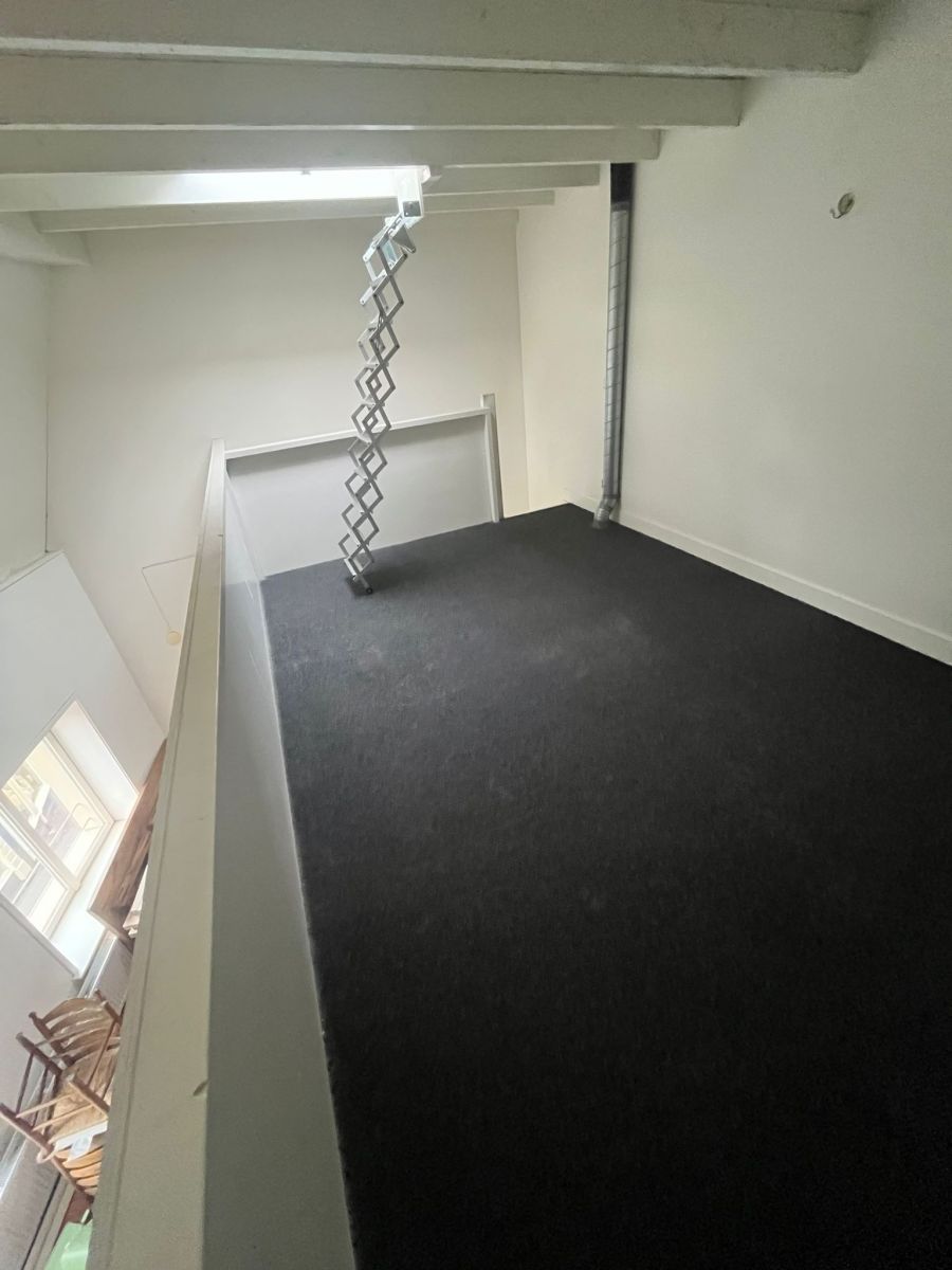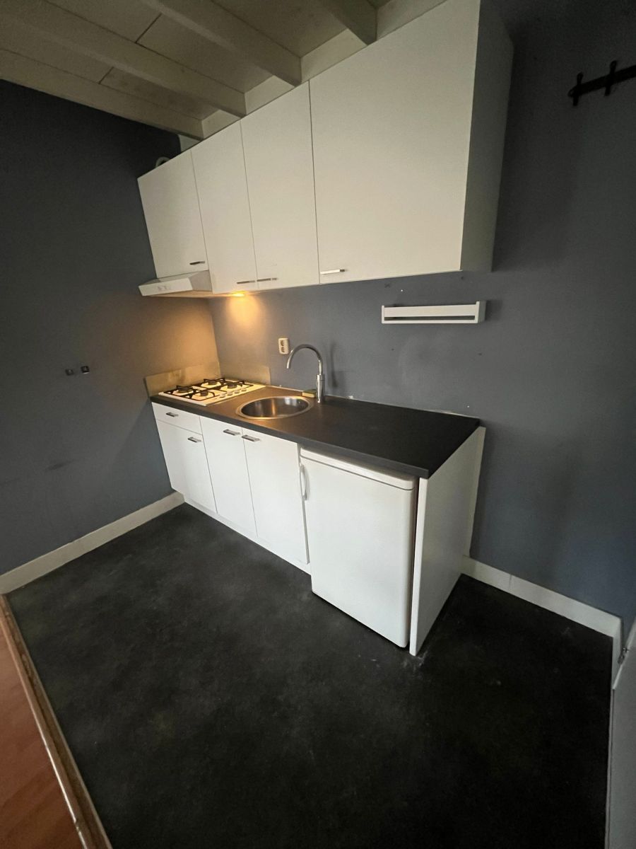 Woonkamer met een open keuken die voorzien is van diverse inbouwapparatuur zoals een koelkast met vriesvak, afzuigkap en een gasfornuis. De badkamer beschikt over een toilet, wastafel, douchecabine en handdoekradiator. Middels een trap bereikt u een vide, dit is tevens het slaapvertrek. Via een opvouwbare trap heeft u de mogelijkheid om gebruik te maken van het dakterras. In de kelder van het complex bevinden zich de bergingen. Daarnaast worden wasmachine en droger gedeeld.
