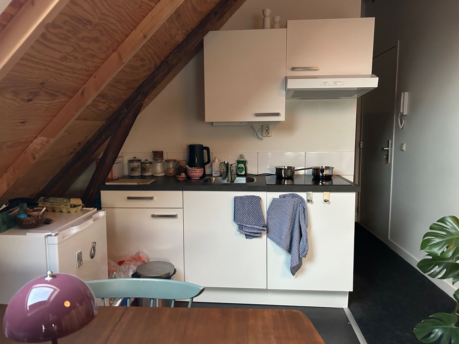 De studio bevindt zich op de tweede etage aan de achterzijde van het pand. De woning beschikt over een keuken, dat voorzien is van een koel-vriescombinatie, kookplaat en een afzuigkap. In de badkamer is een douchecabine, wastafel en toilet te vinden. Op de tweede etage van het pand bevindt zich een wasmachine, waar de bewoners gebruik van kunnen maken.