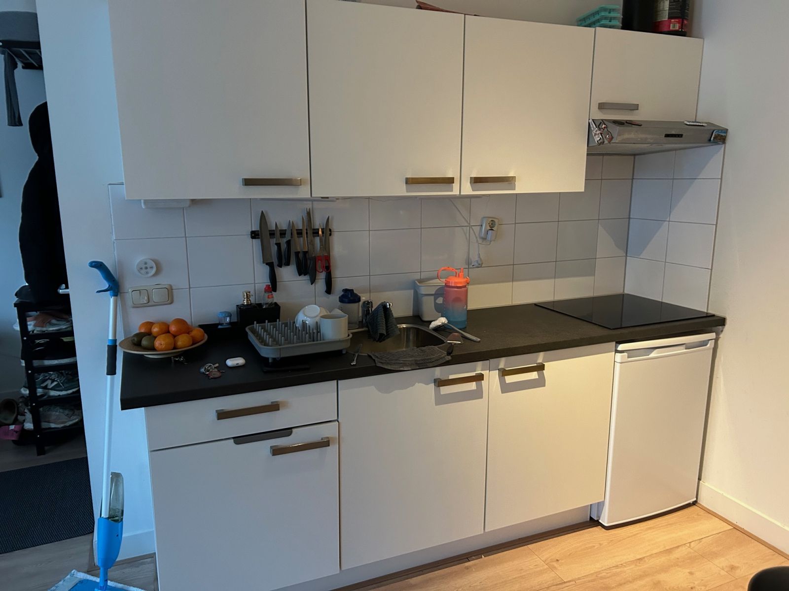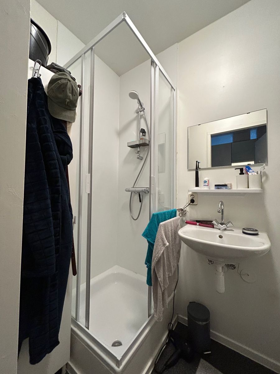 De studio, gelegen op de eerste verdieping, is beschikbaar per 1 januari. De studio beschikt over een keuken met kookplaat, afzuigkap en koelkast met vriesvak. De badkamer beschikt over een douche, wastafel en wasmachineaansluiting. Tot slot beschikt het pand over een gezamenlijk dakterras.