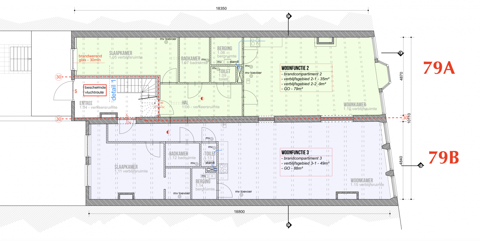 De wasmachineaansluiting bevindt zich in de slaapkamer, waar tevens ruimte is voor een inloopkast. Daarnaast is er een berging aanwezig naast de keuken. Het appartement wordt opgeleverd met vloerbedekking.